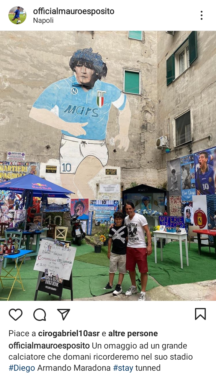 Mauro Esposito ricorda Diego Armando Maradona. L’ex attaccante, al Cagliari dal 2001 al 2007 (199 gare giocate e 58 reti) ha posato a Napoli davanti ad una gigantografia che ricorda il pibe de oro, annunciando un appuntamento allo stadio ex San Paolo.