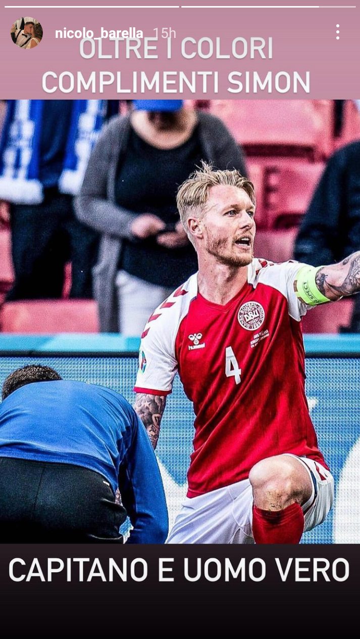 ONORE. Se la vita di Christian Eriksen è salva il merito va sicuramente ai medici che sono prontamente intervenuti. C’è però un aspetto umano che ha colpito tutti ed è la gestione dell’emergenza mostrata dal capitano danese Simon Kjaer. Il difensore del Milan è stato il primo ad intervenire in soccorso del compagno, a comprendere subito la gravità della situazione, ma non solo. Ha chiesto ai compagni di fare muro alle telecamere, non ha mai tolto gli occhi dai soccorsi, se non per andare dalla disperata compagna di Eriksen a confortarla con un abbraccio che ha commosso il mondo. Per tutti questi motivi Kjaer è diventato l’eroe del giorno e anche Nicolò Barella ha voluto rendere omaggio al comportamento esemplare del numero 4 danese. “Oltre i colori, complimenti Simon – ha scritto in una Instagram stories il centrocampista della nazionale azzurra – Capitano e uomo vero”. E tutto il mondo del calcio, come Nicolò, può celebrare una storia a lieto fine grazie ai medici, a un capitano coraggioso e a un guerriero Vichingo che ha sconfitto la morte.