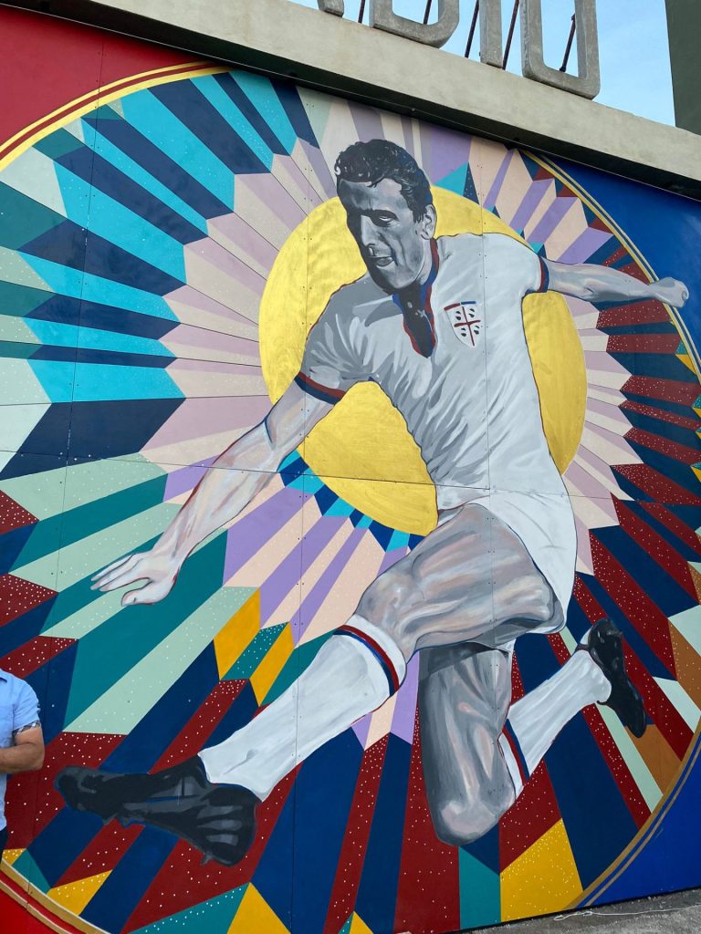 L’OPERA. Questa sera, allo stadio Amsicora che fu teatro della vittoria tricolore del Cagliari 1969-70, è stato inaugurato un murale raffigurante Gigi Riva. L’opera (delle dimensioni di 5 metri x 6) è stata realizzata dalla Cooperativa Skizzo di San Gavino Monreale, su iniziativa del Comitato “Una statua per Gigi Riva“.