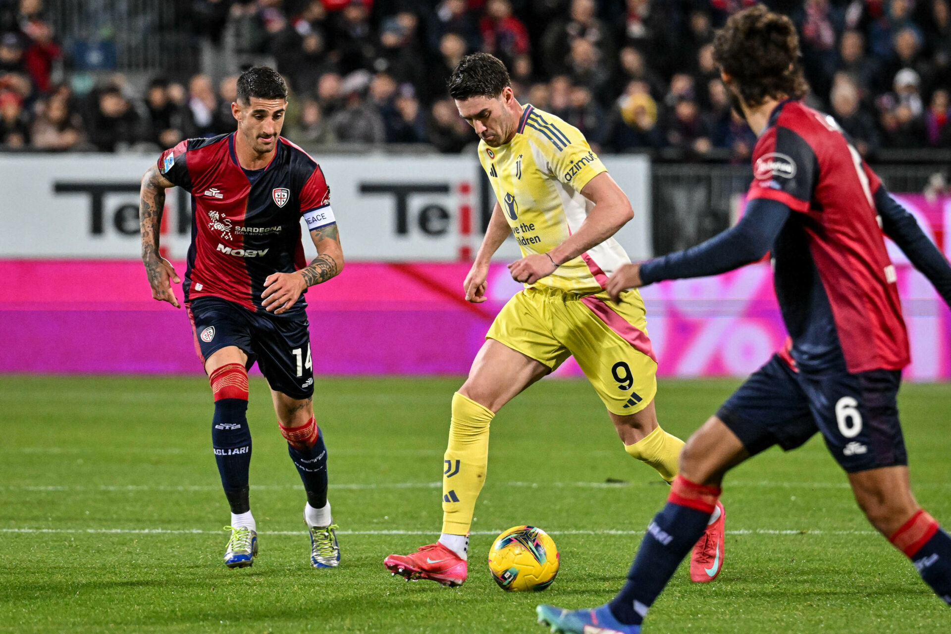 Dusan Vlahovic of Juventus FC during Cagliari Calcio vs Juventus FC, Italian soccer Serie A match in Cagliari, Italy, February 23 2025