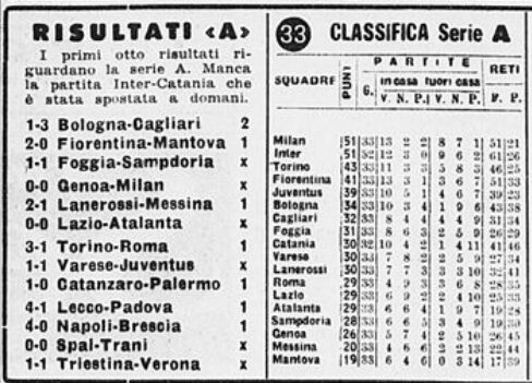 CHIUSURA IN BELLEZZA. Penultima giornata del campionato 1964-65, quello d’esordio per la compagine isolana in massima serie. I sardi fanno visita al Bologna, che indossa il tricolore sul petto. La squadra allenata da Arturo Silvestri si impone per 3-1: Nenè la sblocca a inizio ripresa, pareggia il tedesco Haller appena 3 minuti dopo. Francesco Rizzo e ancora Nenè chiudono il risultato a favore del Cagliari, che al termine della stagione avrebbe chiuso al 6° posto agganciando all’ultimo turno proprio i felsinei, dopo un girone di ritorno spettacolare.