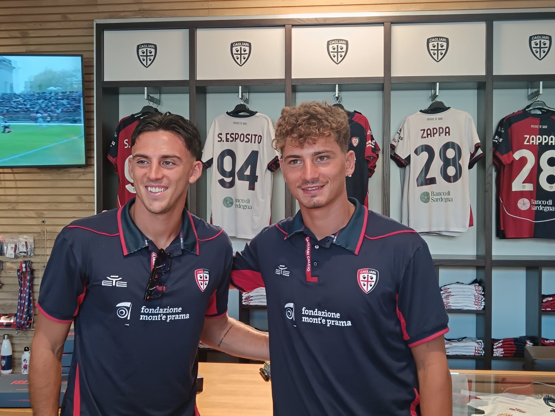 I giocatori del Cagliari Sebastiano Esposito e Gabriele Zappa sono stati i protagonisti dell’evento rossoblù “Meet&Greet” al Cagliari 1920 Store di Piazza L’Unione Sarda. L’occasione giusta per i media di conoscere – e far conoscere – l’attaccante arrivato in questa sessione di mercato con una mini conferenza stampa di presentazione (LEGGI QUI) e di manifestare il proprio affetto per i tifosi.
