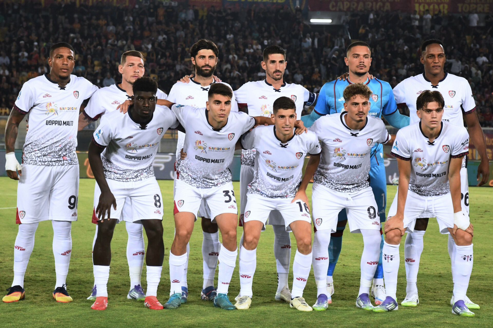 Cagliari Cialcio line up during US Lecce vs Cagliari Calcio, Italian soccer Serie A match in Lecce, Italy, September 19 2025