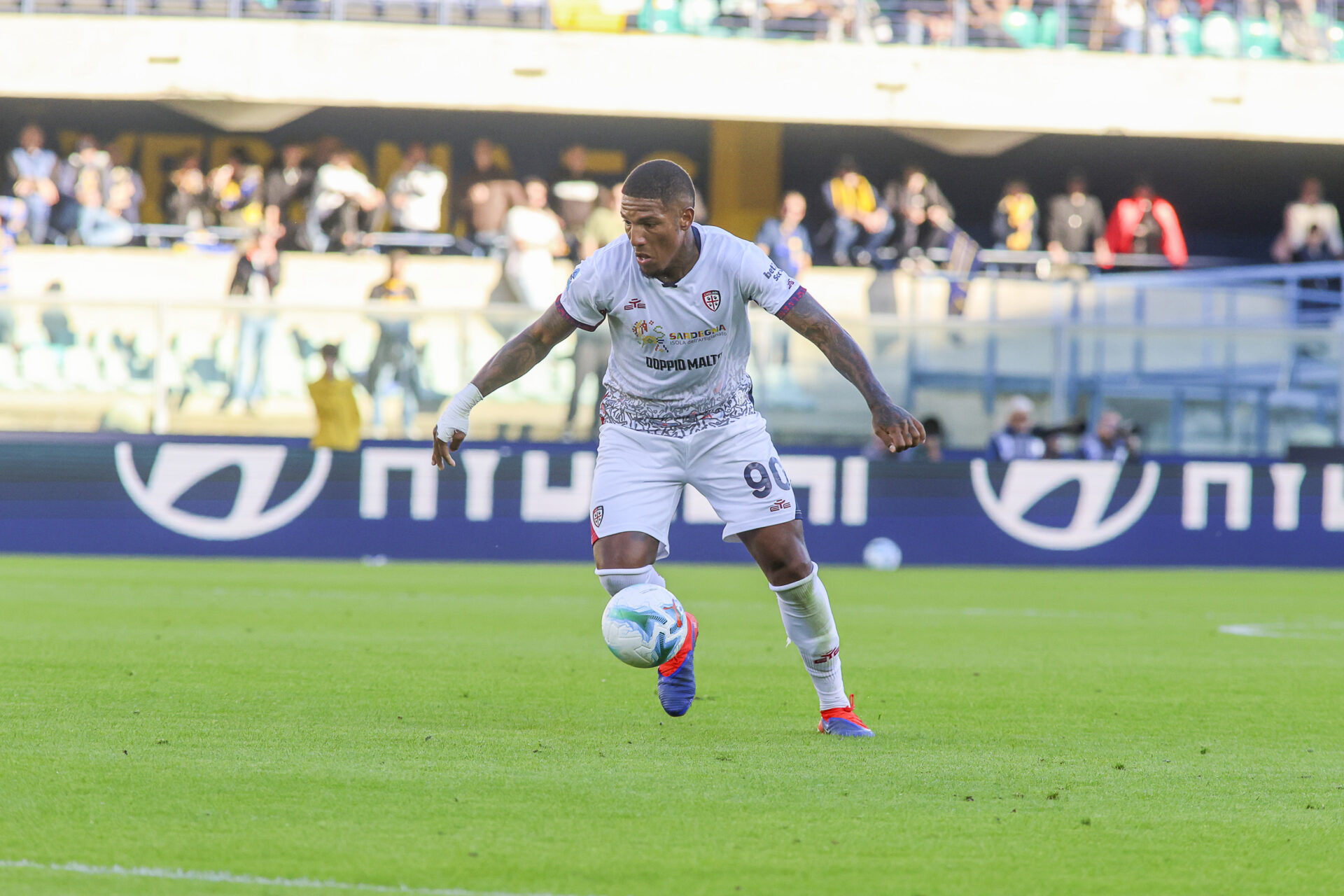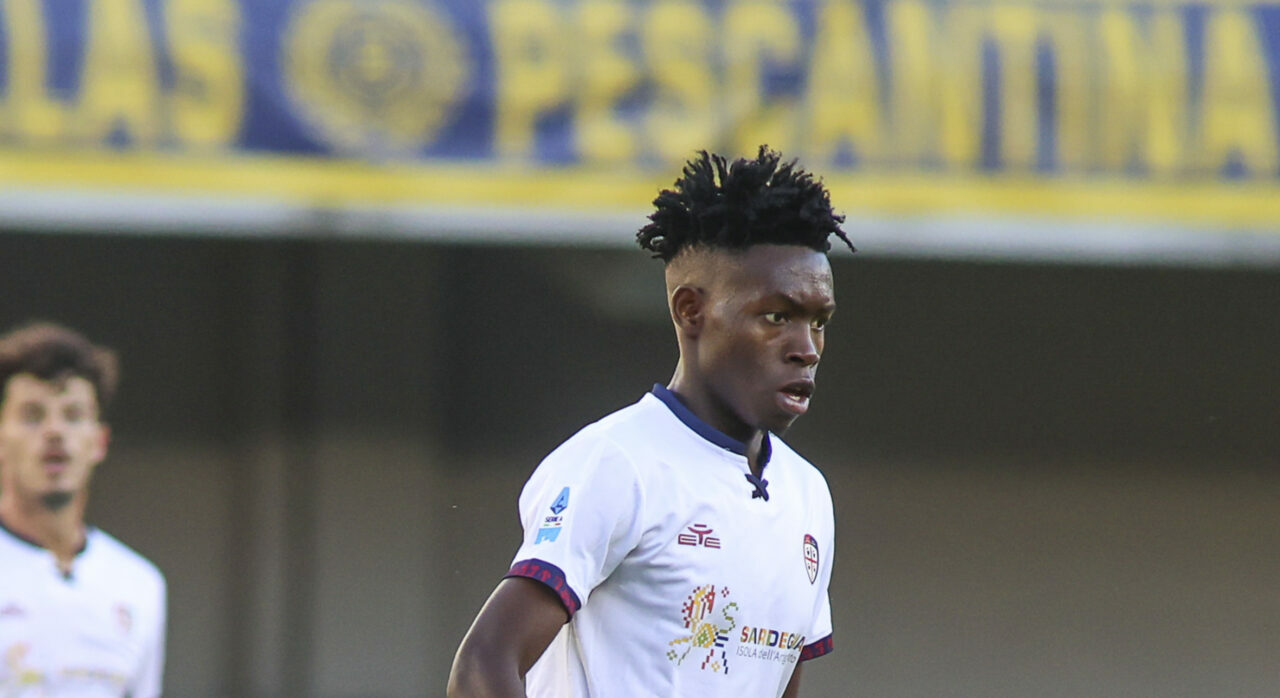 Michael Folorunsho of Cagliari Calcio play the ball during Hellas Verona FC vs Cagliari Calcio, 8° Serie A Enilive 2025-26 game at Marcantonio Bentegodi stadium in Verona (VR), Italy, on October 26, 2025.