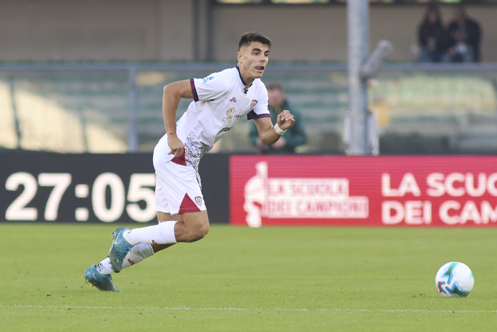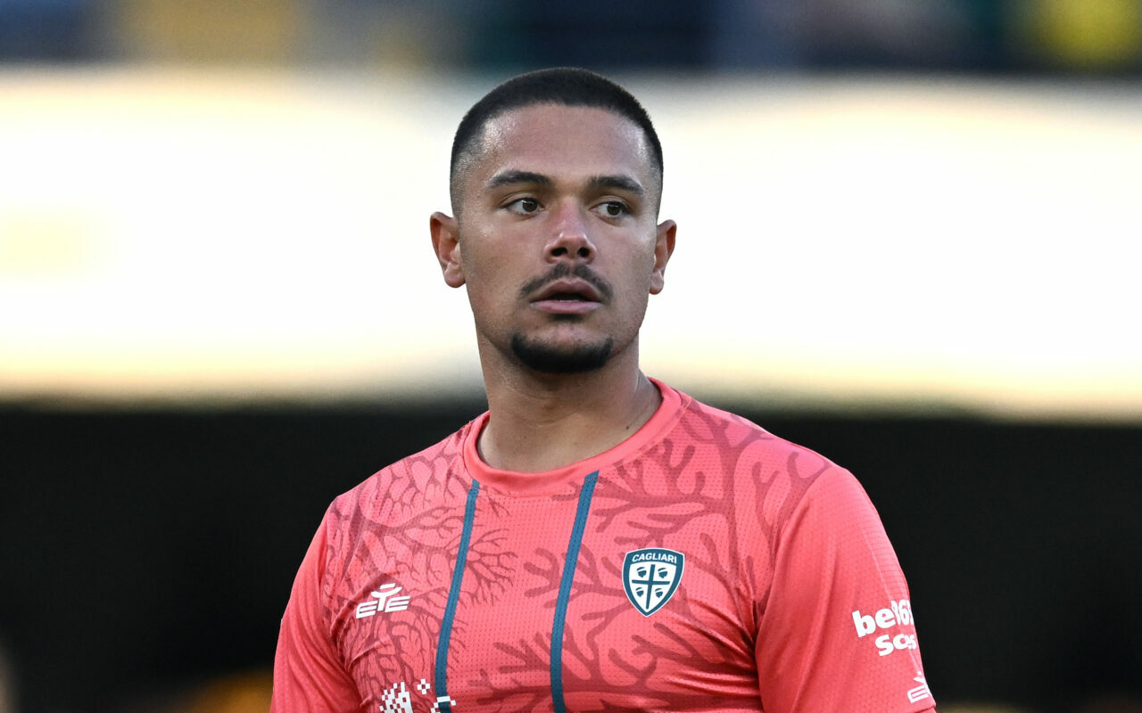 Adam Obert of Cagliari Calcio play the ball during Hellas Verona FC vs Cagliari Calcio, 8° Serie A Enilive 2025-26 game at Marcantonio Bentegodi stadium in Verona (VR), Italy, on October 26, 2025.