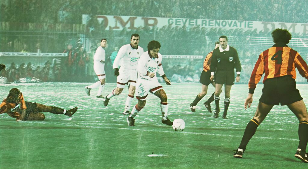 Sul campo, la partita prese subito una piega favorevole per i rossoblù. Dopo una fase iniziale di studio, fu Matteoli a rompere l’equilibrio con un sinistro preciso dalla distanza, una conclusione che sorprese il portiere e accese l’entusiasmo del settore ospiti. Il capitano rossoblù raccontò il valore di quella serata in un’intervista a CalcioCasteddu nel 2022. La rete dava al Cagliari la spinta necessaria per cercare di controllare il ritmo, ma il Malines, forte dell’esperienza internazionale, trovò la forza per reagire. Il pareggio arrivò grazie a Czerniatynski, attaccante navigato capace di sfruttare un’occasione ben costruita dai belgi, riportando il risultato in equilibrio. L’episodio non scoraggiò i sardi, che ripresero a macinare gioco con determinazione e spirito propositivo.