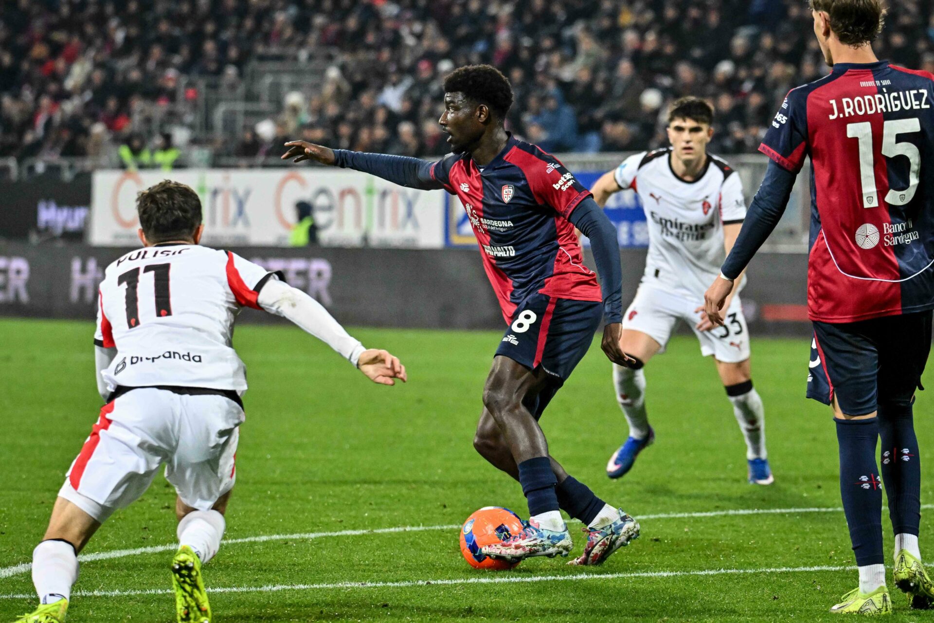 Michel Adopo of Cagliari Calcio during Cagliari Calcio vs AC Milan, Italian soccer Serie A match in Cagliari, Italy, January 02 2026